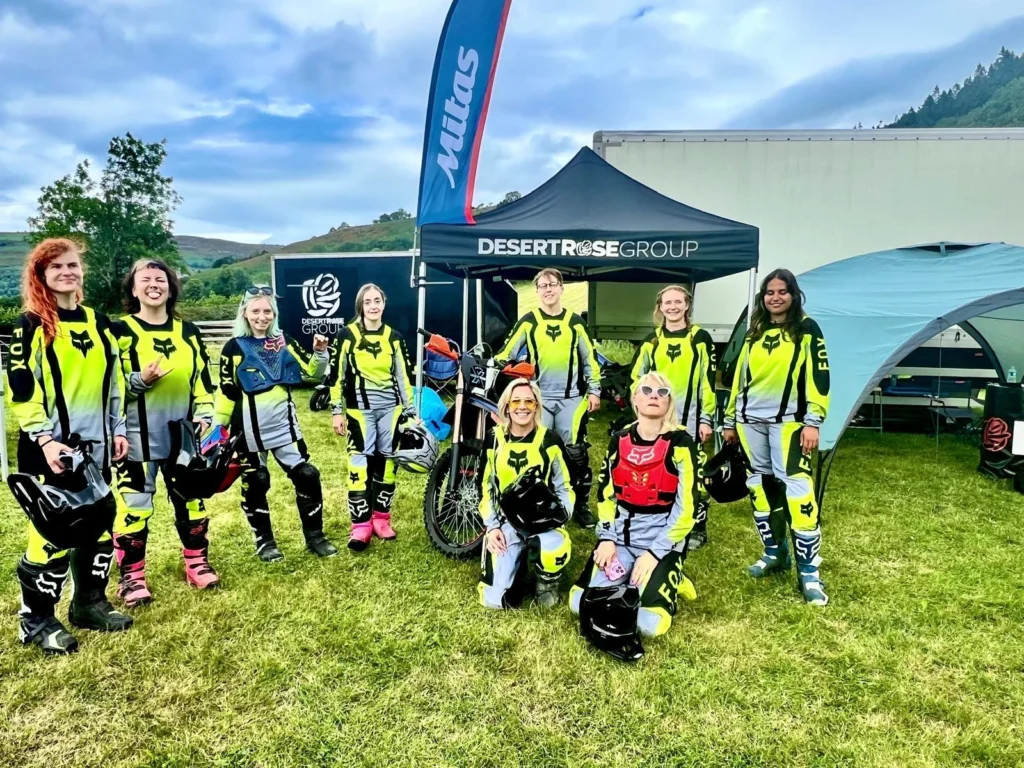 Ever wondered what 50 women fully supporting each other looks like? That’s what journalist Serena Doyle wondered when heading down to East Sussex on the last weekend in August. I mean, it’s pretty unlikely that a field full of muddy, helmet wearing, motivation screaming, zigzag racing, motorbike pushing women is the first image that comes to mind. But that’s exactly what it looked like by the end of the Ladies Day that Desert Rose Riding Academy hosted in partnership with Be Right Back and MotoGirlsUk. From my view, watching from the back of the Polaris 4×4, comfy amongst logs and cones and bits of kit, what made this final competition (and the whole day actually) so collaborative was the variety of women who had signed up to the event – there were a huge range of abilities and backgrounds! •Some had never ridden a motorcycle when they arrived on the 65 acre wooded estate that morning •Some hadn’t ridden one for the last 30 years! •Some had circumnavigated the world on a motorbike •Some had literally been to Outer Mongolia •Some had ridden Motocross since age 3, were fearless (mad??) hill climb racers, and were slinging wheelies left right and centre This mix is what made the teams pull together so well in my opinion, and made the camaraderie so darn strong. When women lift each other up, everyone wins in one way or another. I’d seen a handful of these women turn up super shy. And now here they were, confidently racing the bikes, carrying a pillion (or two!), revving the engines so they chucked out 2 stroke fumes, and spinning tyres as they turned in the wet grass, each team pushing themselves to use every skill they’d learned that day. I know they’d fought every ounce of insecurity to sign up to something new. Silenced every doubt that told them they couldn’t or shouldn’t. And yet here they were – doing the thing!